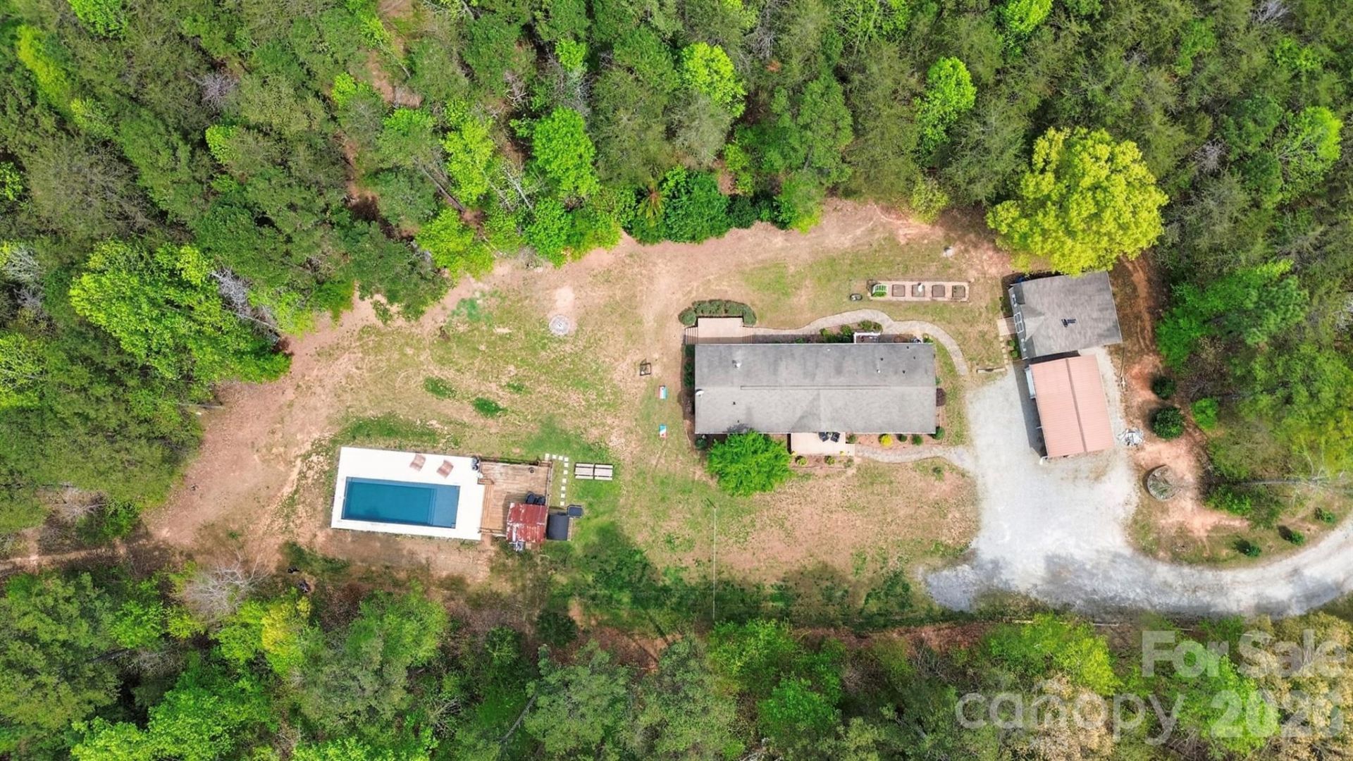 Private 25-Acre Retreat with Pool, Sauna & Potential. Nature, recreation, and opportunity on a beautiful 2 parcel property featuring a 19-acre parcel and a 6-acre parcel already divided into three 2-acre lots with survey. Owner has done a recent survey. Both parcels transfer and can be divided into 3 each. Ideal for development, or multi-family living. Tucked away at the end of a ¼-mile private driveway and surrounded by hardwoods and pines, the setting offers exceptional seclusion along with a mix of wooded areas, open fields, and established trails perfect for hiking, mountain biking, ATV and dirt bike riding, hunting, and recreational shooting. The OUTDOOR living setup is designed for both relaxation and entertaining, highlighted by a less-than-one-year-old 15' x 40' fiberglass inground pool with a sun deck, gradual slope to a 7-foot deep end, built-in seating and safety ledge. Pool has a health conscious chemical-free water system with no chlorine or salt. A spacious deck and covered area overlook the pool and electric barrel sauna that accommodates 6?8 at temperatures above 230°F for dry or steam use. Sit on the large front porch and plan your next addition there is room for it all. The property is well-suited for homesteading or agricultural use, offering opportunities for livestock or planting. INSIDE: The home has an open layout with a separte bedroom plan, great light, offers generous bedrooms, well appointed baths. In the primary bedrom there is a tub and additional 6X9 area. Perfect home to live in while you build your secluded dream home on the hill in an even more private setting.AMENITIES: existing 8x8 chicken coop for 40 and 14-foot run. Multiple outbuildings including a 20x30 open side by side with an 8x8 roll-up garage door, a 14x24 gym/workshop building with electricity and fan, a 15x7 pool supply storage area, a wood shed, an additional enclosed storage building, and a metal roll-up carport structure currently used as a gym or vehicle storage. Additional features include a covered porch (13' x 11.5) which could be easily screened and rear deck for added outdoor living space. Updates: include a NEW HVAC system installed within the past year, water filtration system, dehumidifier. The property is also supported by two electrical transformers, including a dedicated setup for the pool and sauna area. This property is ideal for creating a private retreat, family compound, working homestead, or investment. Amazing quiet and with no overhead electric. Town of Denver is only 10 minutes. Come relax! CHECK out the Virtual Tour: https://www.youtube.com/watch?v=9V4HZDVF490 see listing 4367881